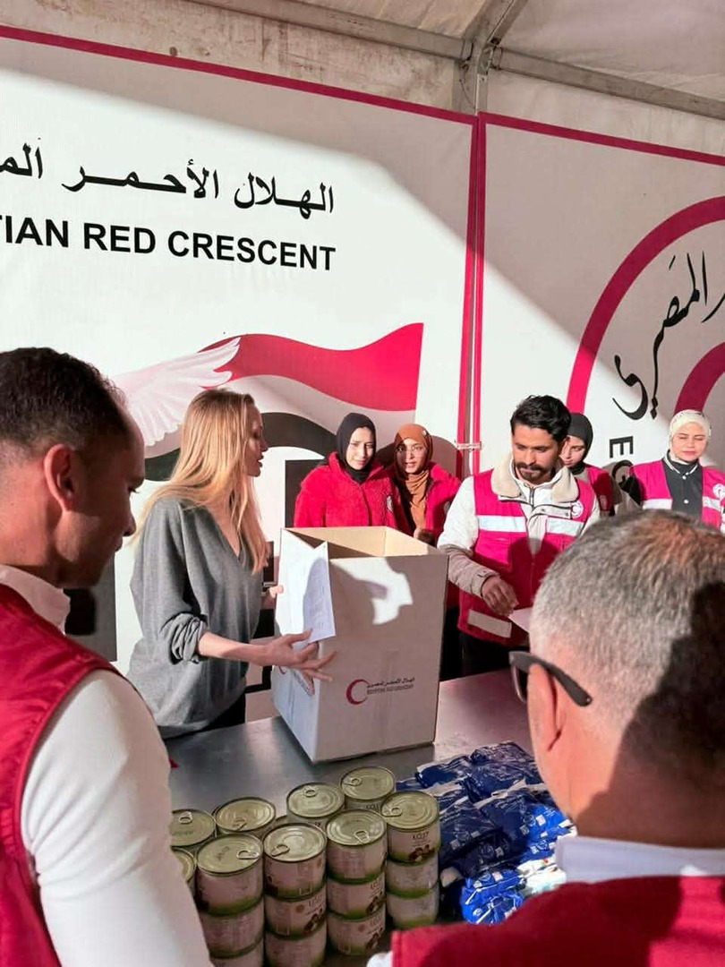 ووجهت أنجلينا، رسالة "محبة" مكتوبة إلى سكان غزة خلال تفقدها المخازن اللوجيستية للمساعدات التابعة للهلال الأحمر المصري في مدينة العريش، وكتبت على إحدى العبوات الكرتونية للمساعدات التي شاركت في تعبئتها بنفسها: "أرسل إليكم محبتي"، وفي الأسفل توقيعها.