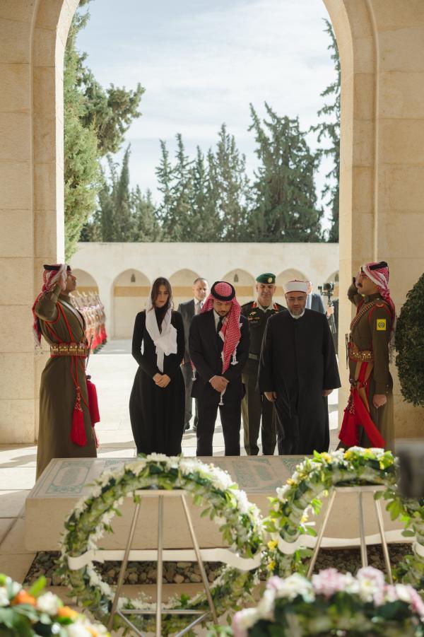 وقرأ سموه، ترافقه سمو الأميرة رجوة الحسين، الفاتحة على روح جلالته الطاهرة، ووضع إكليلا من الزهور على الضريح.