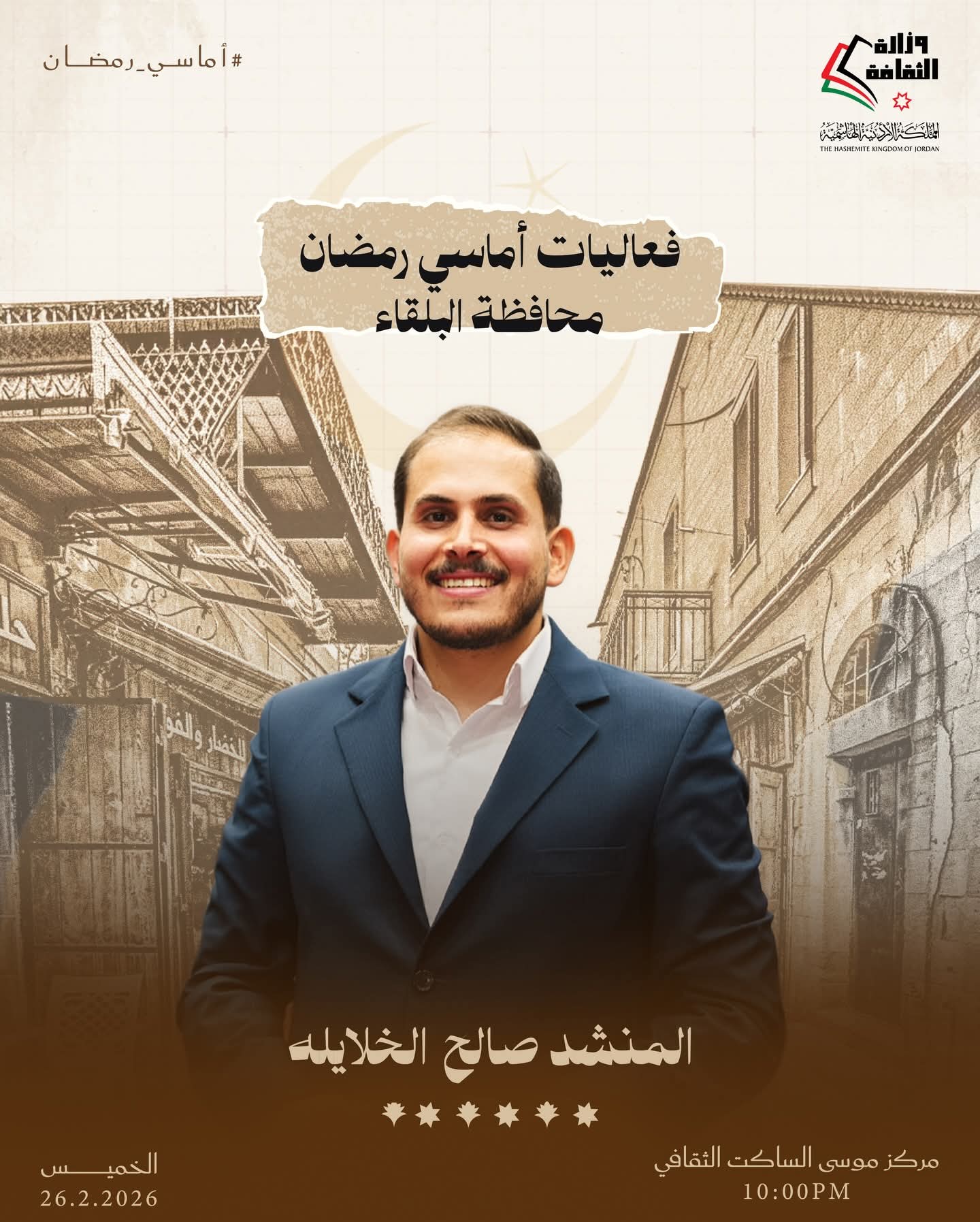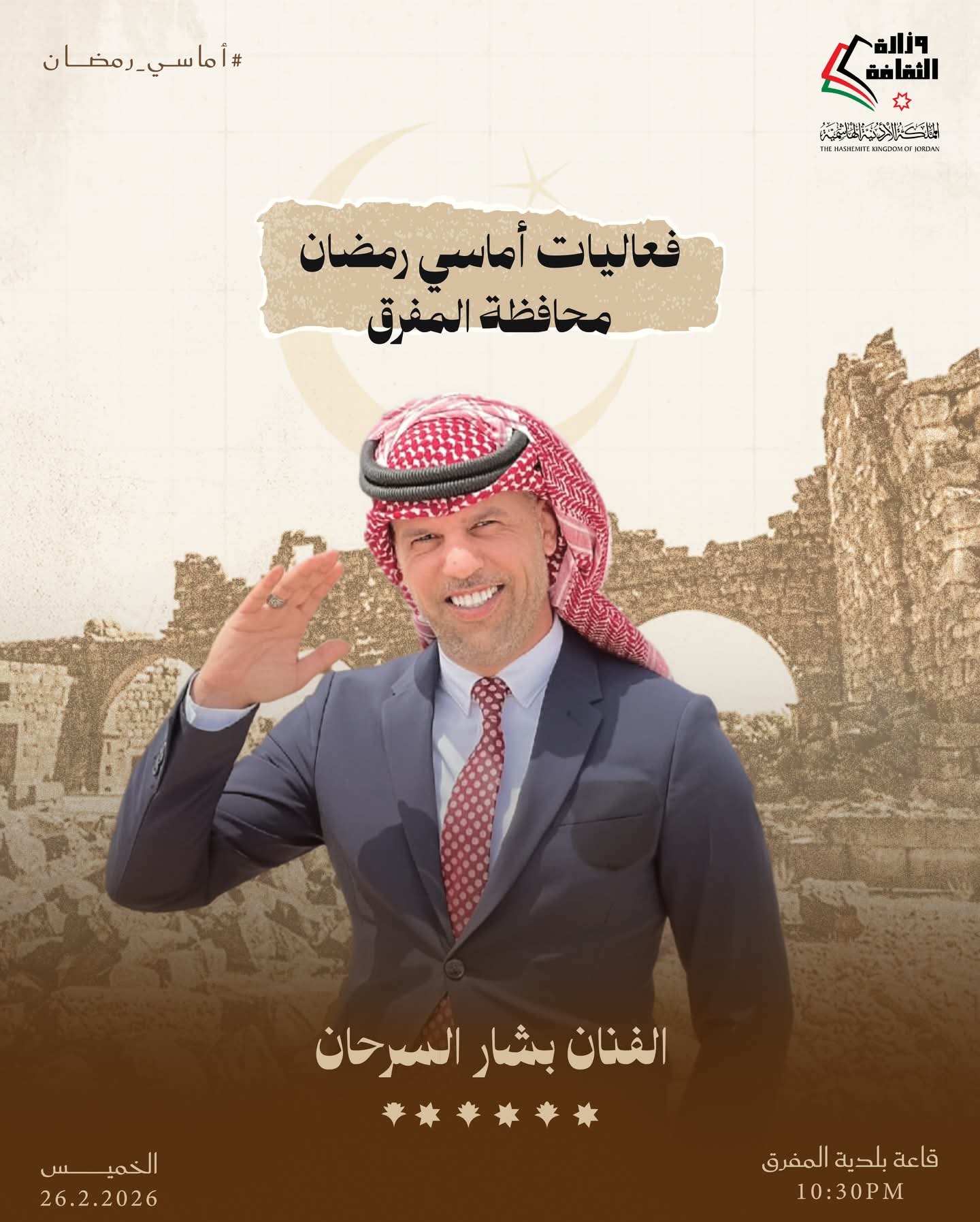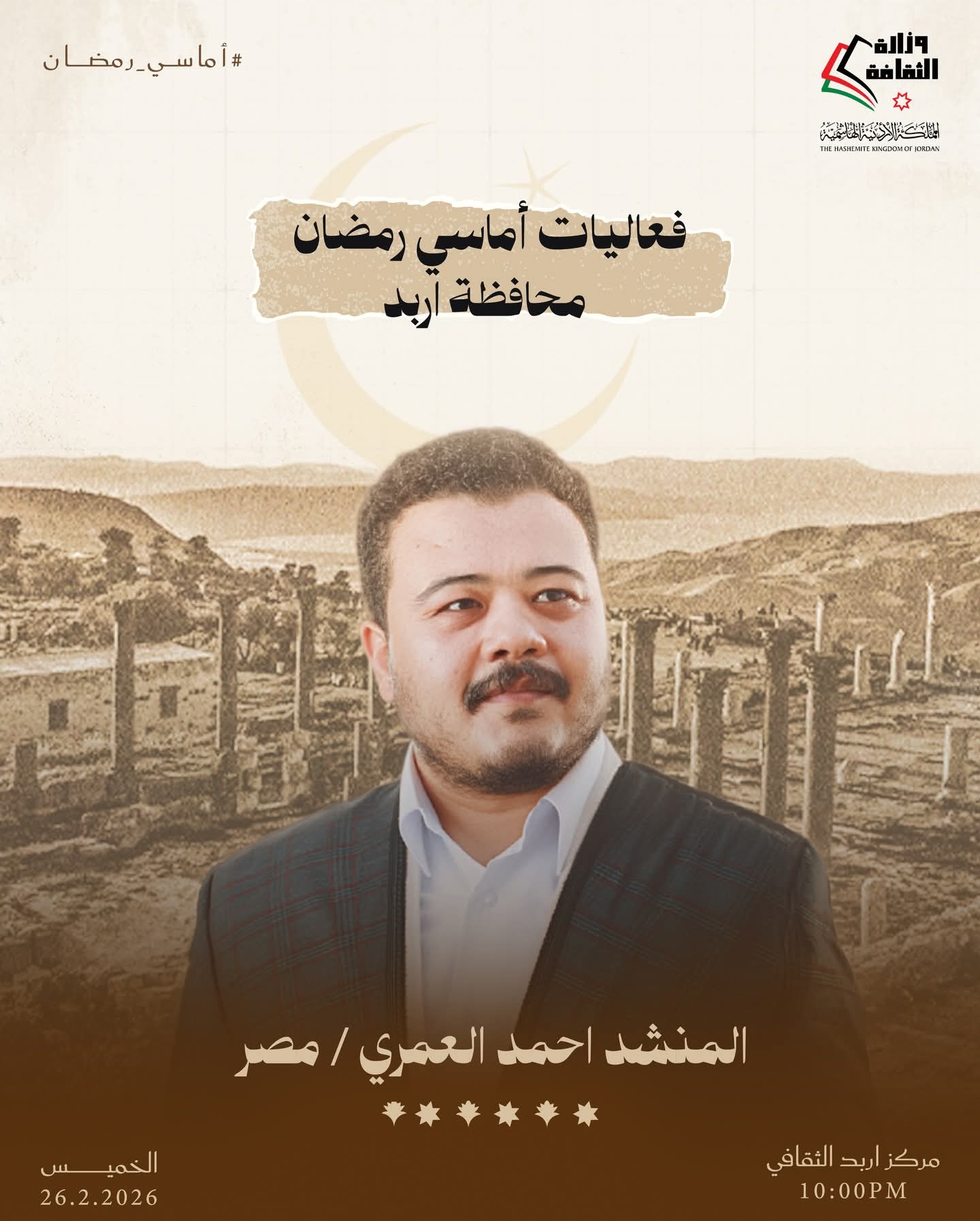 وقال وزير الثقافة مصطفى الرواشدة إن البرنامج يتضمن فعاليات متنوعة تراعي التعدد الثقافي وتعمل على ترسيخ القيم الإيجابية خلال أيام الشهر الفضيل، مشيرًا إلى مشاركة فرق إنشاد ديني ومنشدين أردنيين وعرب.