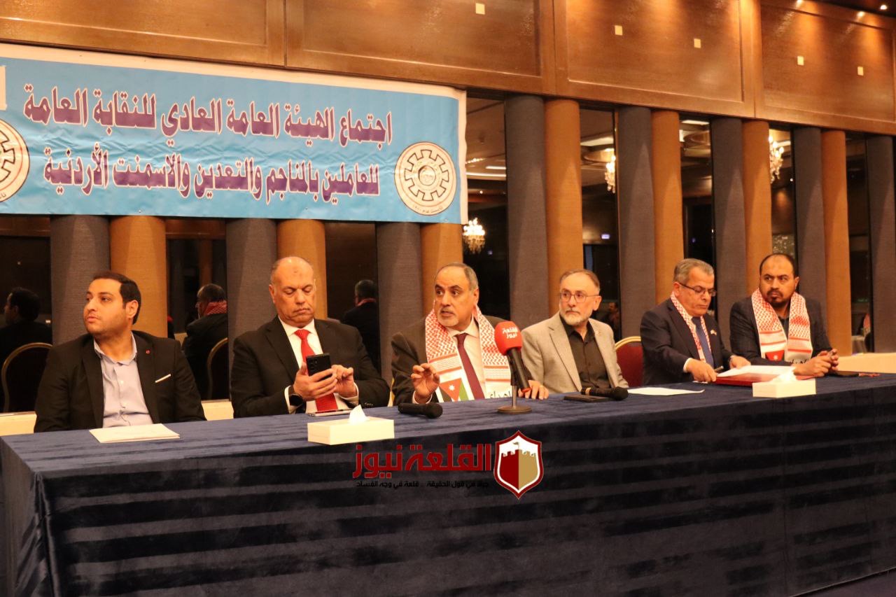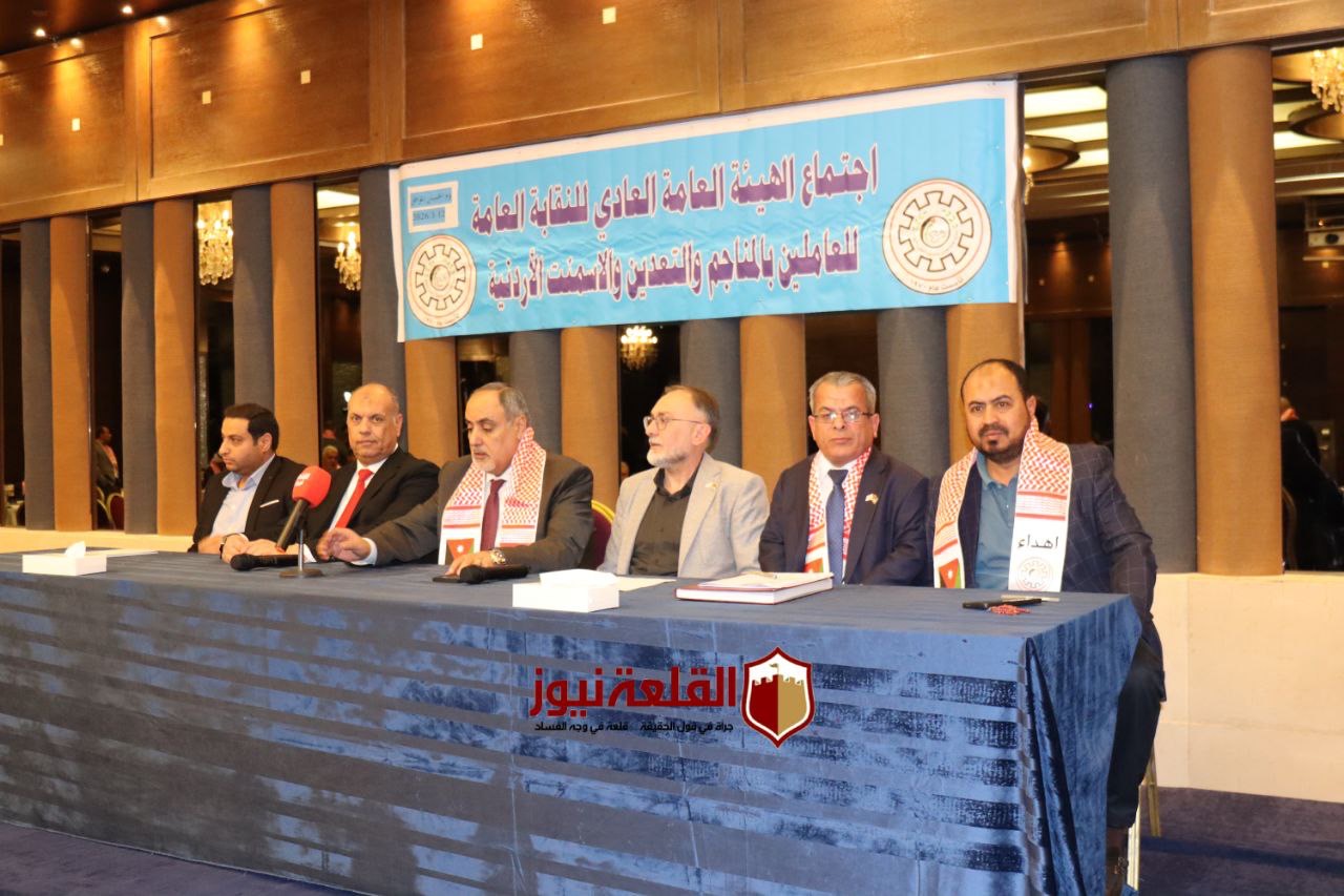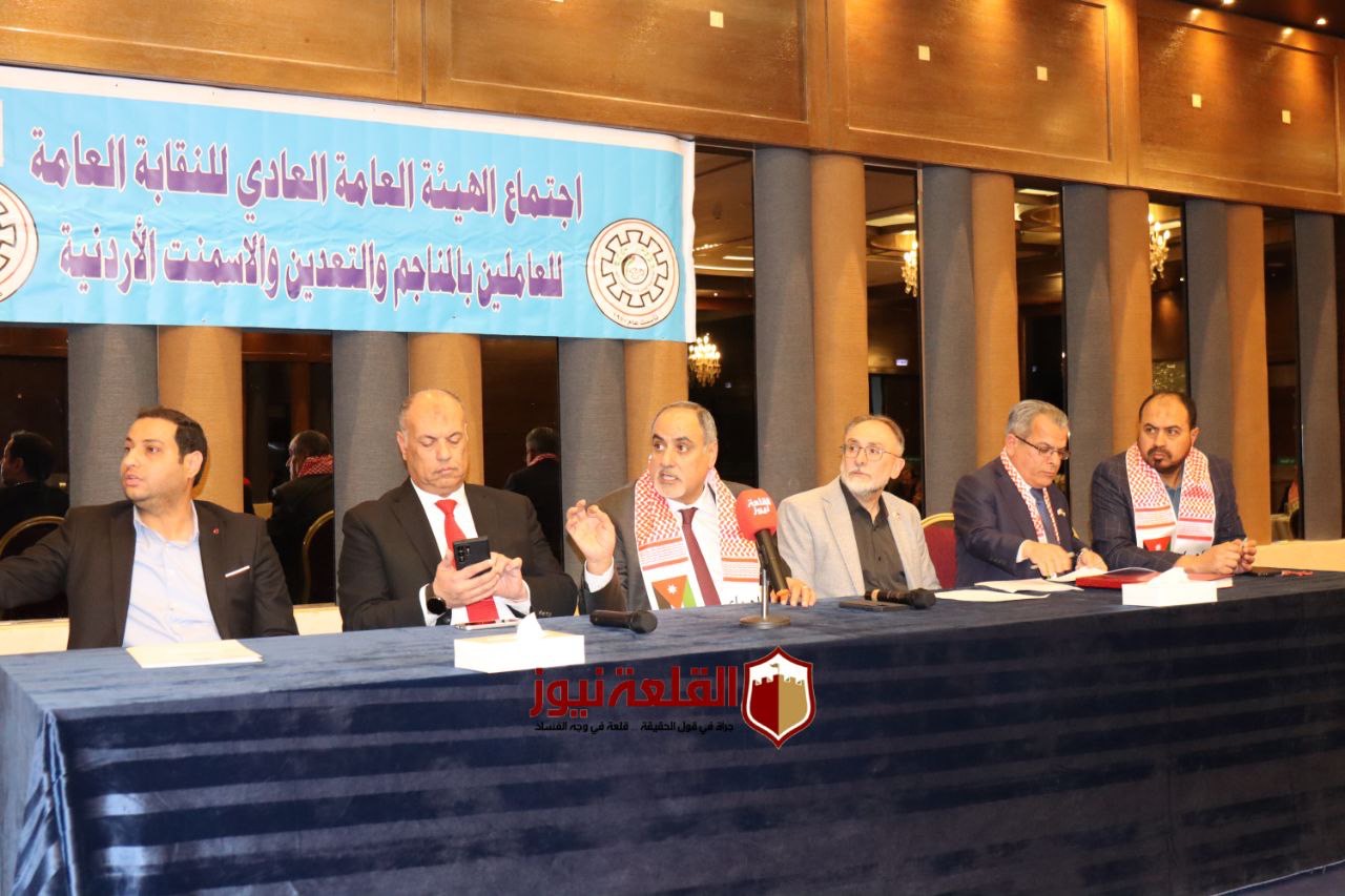 عقدت النقابة العامة للعاملين في المناجم والتعدين والأسمنت، اجتماع الهيئة العامة "العادي" برئاسة رئيس النقابة، ورئيس الاتحاد العام لنقابات عمال الأردن، خالد الفناطسة، وبمشاركة أعضاء الهيئة الإدارية واللجان النقابية التابعة للنقابة، وبحضور نائب رئيس الاتحاد خالد أبو مرجوب، مندوباً عن الاتحاد.