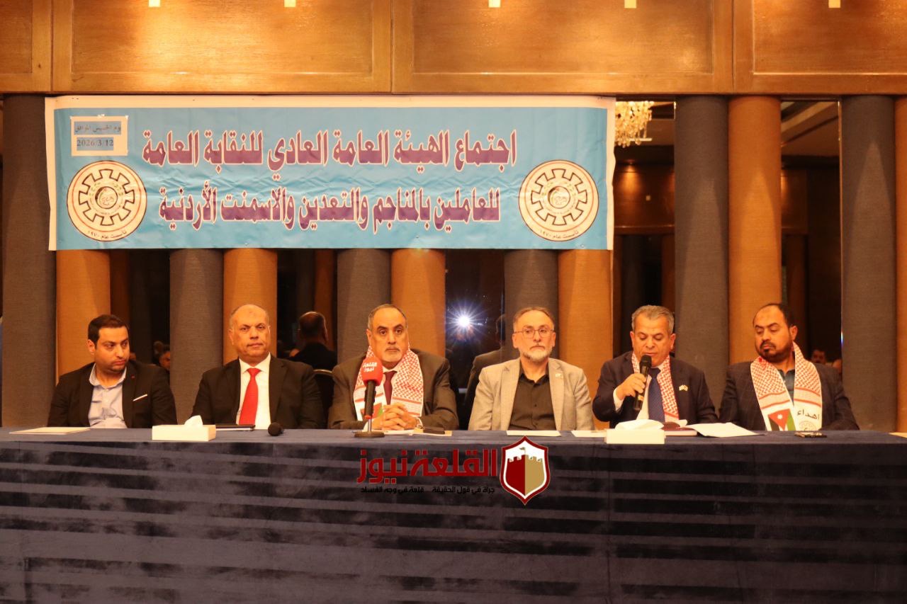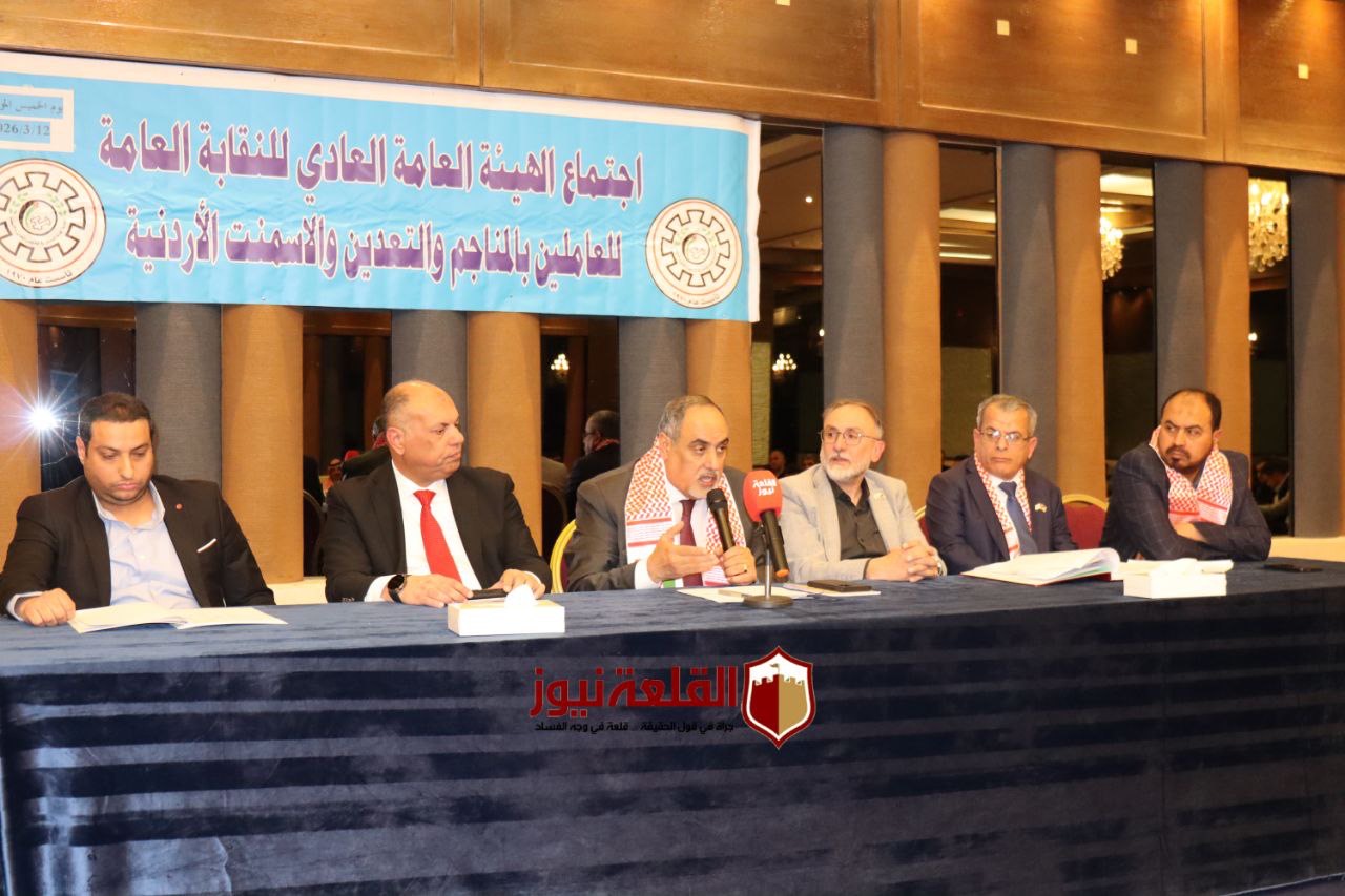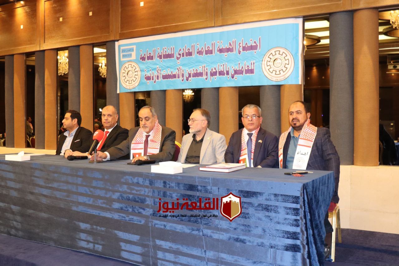 عقدت النقابة العامة للعاملين في المناجم والتعدين والأسمنت، اجتماع الهيئة العامة "العادي" برئاسة رئيس النقابة، ورئيس الاتحاد العام لنقابات عمال الأردن، خالد الفناطسة، وبمشاركة أعضاء الهيئة الإدارية واللجان النقابية التابعة للنقابة، وبحضور نائب رئيس الاتحاد خالد أبو مرجوب، مندوباً عن الاتحاد.