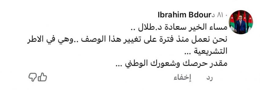 وقال البدور في تعليق على منشور للشرفات: "نحن نعمل منذ فترة على تغيير هذا الوصف.. وهي في الاطر التشريعية".