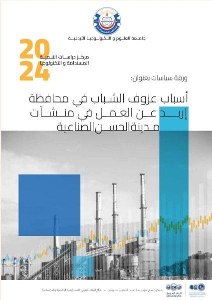 ورقة سياسات تقدم توصيات لمعالجة أسباب عزوف الشباب في محافظة اربد عن العمل في منشآت مدينة الحسن الصناعية