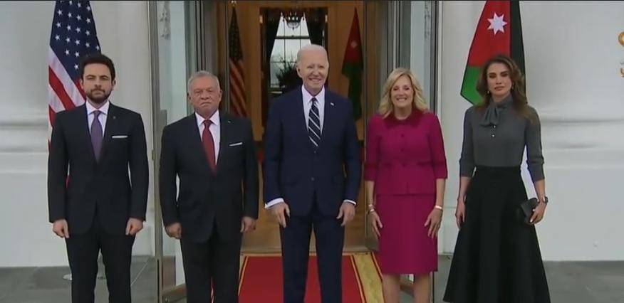 بايدن يستقبل الملك والملكة وولي العهد لدى وصولهم البيت الأبيض