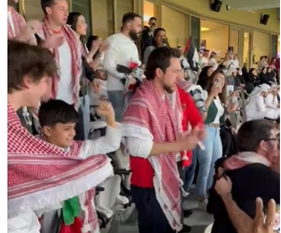 ولي العهد والأمير هاشم يصطحبان الطفل يحيى وائل الدحدوح إلى مباراة المنتخب
