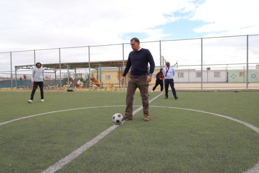 بصورة تعكس روح الاخوة والمحبة .. وزير الداخلية يشارك اطفال مخيم الازرق كرة القدم - صور