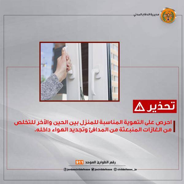 الدفاع المدني للأردنيين: احرصوا على تهوية منازلكم