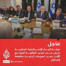 اسرائيل تهدد بالغاء اتفاقية المياه مع الاردن احتجاجا على موقفه المعادي لاسرائيل