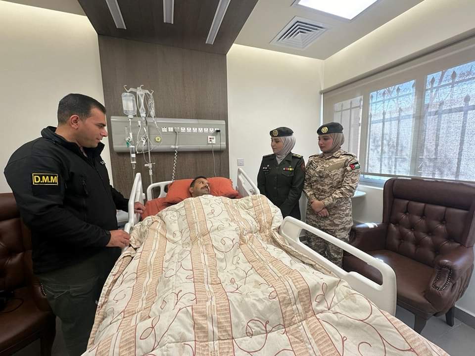 الزملاء في إذاعة القوات المسلحة يطمئنون على صحة احد افراد المستشفى الميداني الذي اصيب في خان يونس