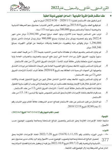 مخالفات ادارية مالية في وزارة الشباب يكشف عنها تقرير ديوان المحاسبة - صرف مكافآت لموظفين دون مسوغ قانوني