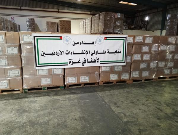 "المقاولين" تسلم الهيئة الخيرية الهاشمية مساعدات عينية لصالح غزة