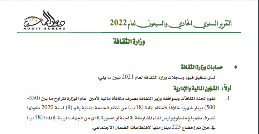 مسؤول بوزارة الثقافة تقاضى مكافأة شهرية تصل 500 دينار