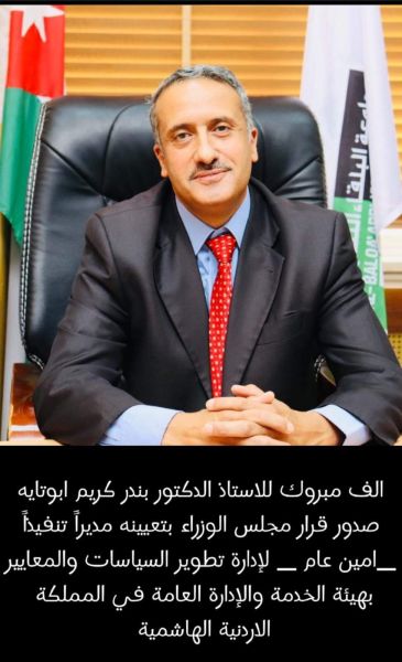 الدكتور بندر كريم أبو تايه مديراً تنفيذيَّاً لإدارة تطوير السِّياسات والمعايير