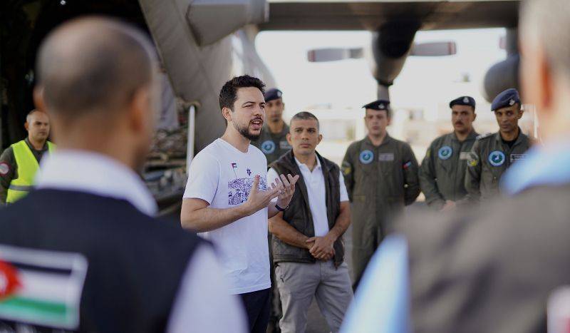 الامير الحسين في وداع طائرة اغاثة اردنية لاهلنا بغزة : مهما طال الظلم فسيحصل الشعب الفلسطيني على حقه بدولته ( صور)