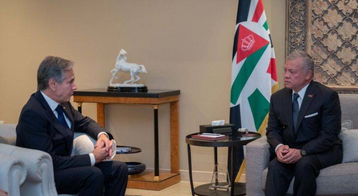 الملك يؤكد لوزير الخارجية الأميركي ضرورة فتح ممرات إنسانية عاجلة لإدخال المساعدات لغزة