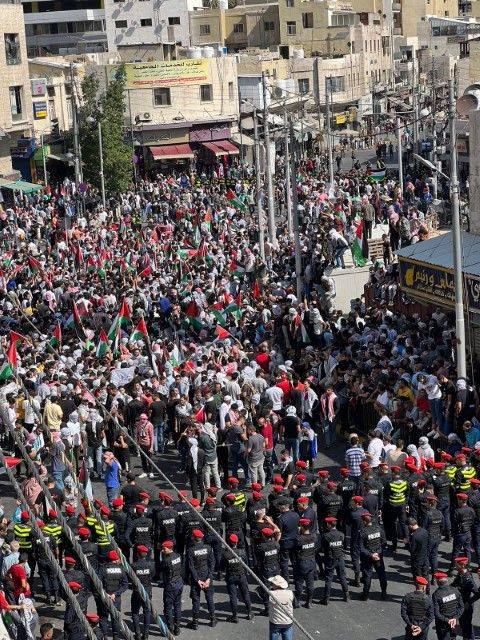 الاردن ... مسيرات ضخمة في معظم محافظات المملكة دعما للمقاومة الفلسطينية