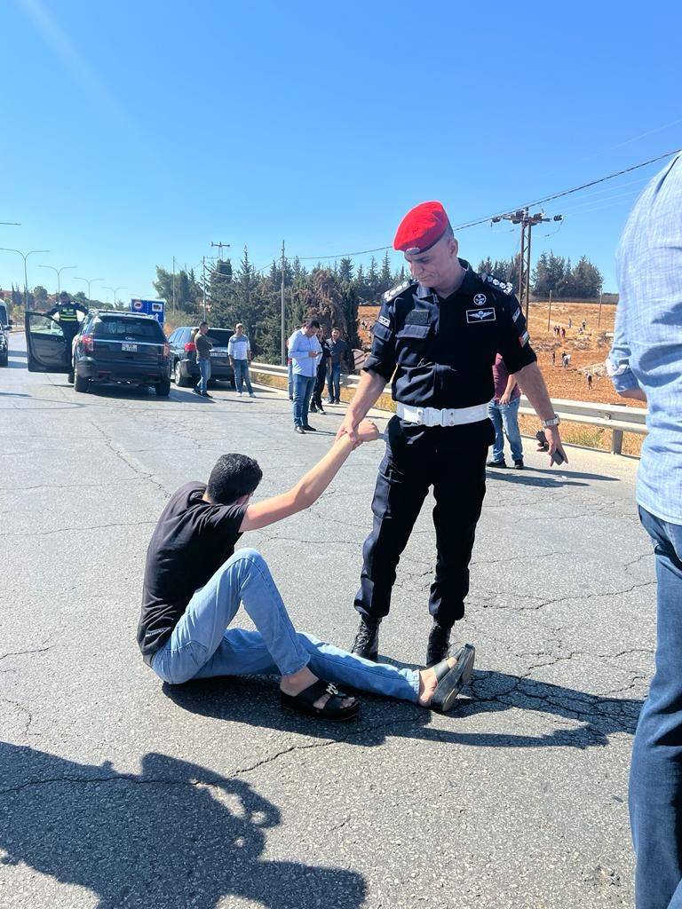 رجال الأمن يقدمون المساعدة لمواطنين مُحتجين تعرضوا لحوادث وإصابات أثناء الإحتجاجات