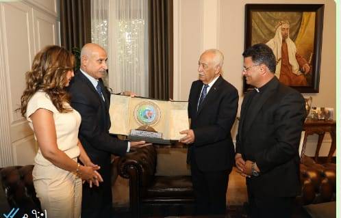 "درع قائد وصانع سلام 2023 للملك عبداالله الثاني من مؤسسة العالم الامريكيه، تسلمه العيسوي نيابة عن جلالته
