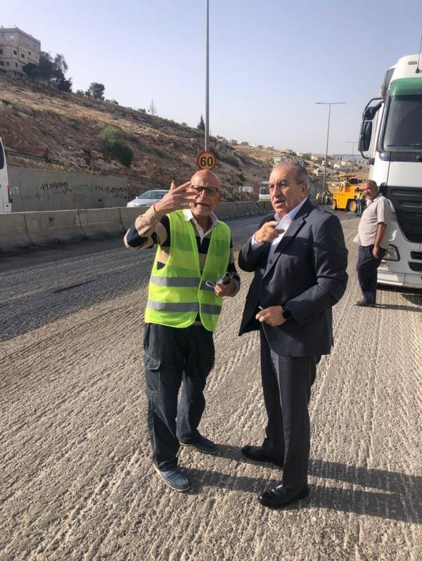وزير الأشغال يتفقد سير العمل بمشروع معالجة انزلاق الجعيدية على طريق عمان - جرش - اربد