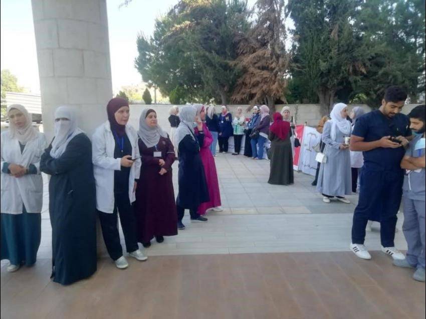 وقفة احتجاجية للعاملين بالمهن الطبية المساندة في مستشفى الأمير حمزة