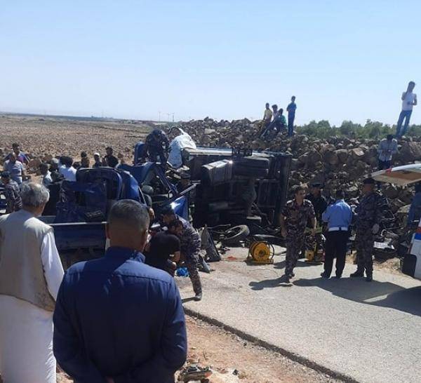 وفاة (8)اشخاص وإصابة (13) آخرين إثر حادث تصادم بين مركبتين في البادية الشمالية