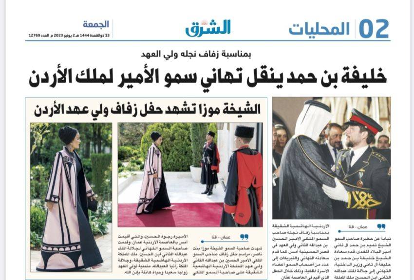 الصحف القطرية تبرز حفل زفاف ولي العهدعلى صدر صفحاتها