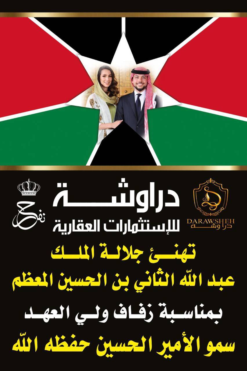 مجموعة الدراوشه للاستثمارات العقارية تهنئ جلالة الملك بزفاف ولي العهد