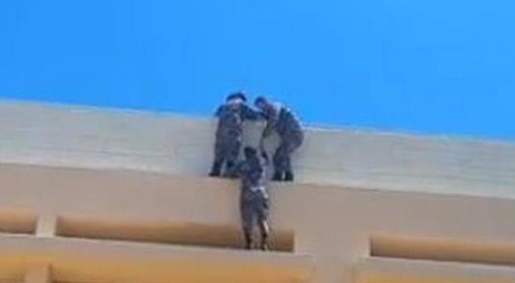 وسط هتافات الطلبة...الدفاع المدني ينقذ طفل عالق على كرنيش طابق ثالث بمدرسة في إربد