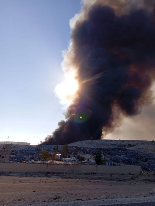 حريق كبير وتصاعد اعمدة الدخان في الضليل - صور