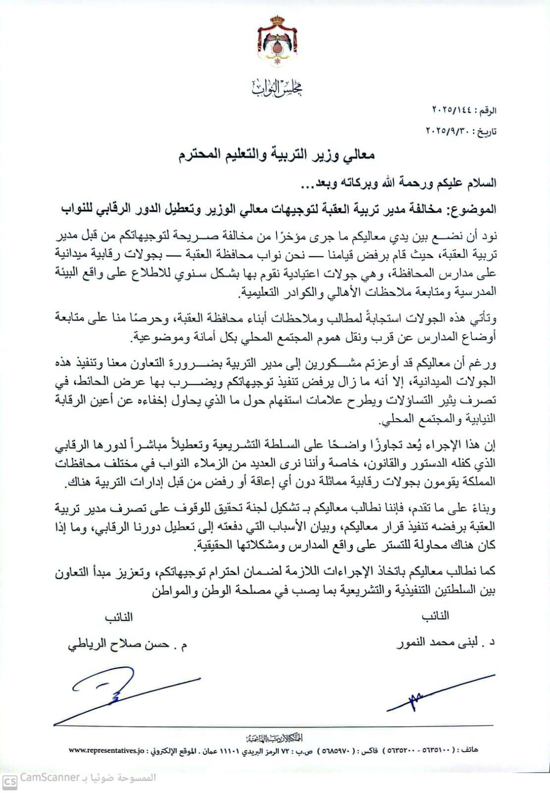 مدير تربية العقبة يضرب بقرار وزير التربية عرض الحائط