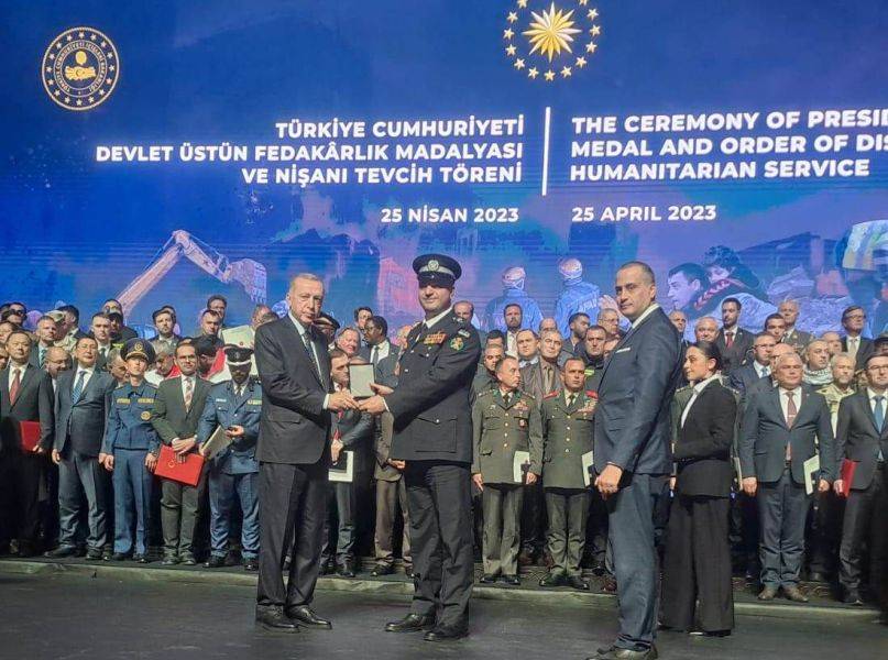 الرئيس التركي يسلم قائد فريق البحث والانقاذ الدولي الاردني وسام التضحية العظمى