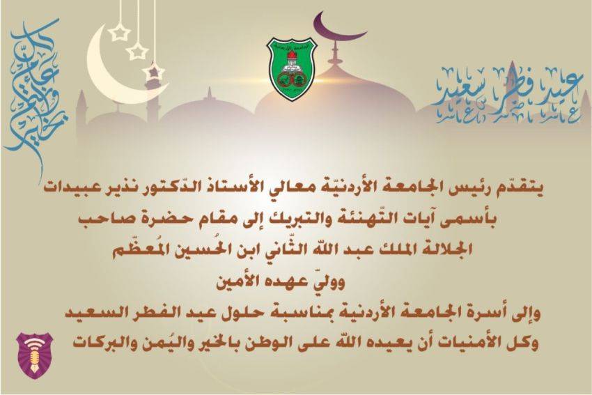 عبيدات" يُهنّئ أسرة الجامعة الأردنية بمناسبة عيد الفطر السعيد