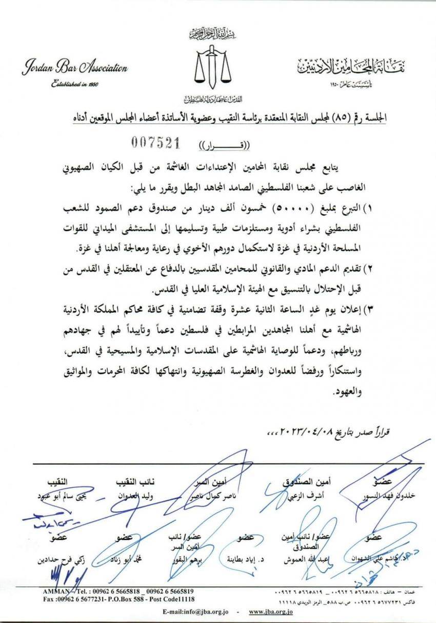 نقابة المحامين تتبرع لدعم صمود الشعب الفلسطيين ..ووقفة تضامنية للمرابطين / الأحد /