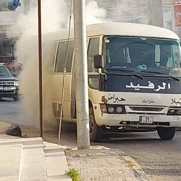 اشتعال حافلة ركاب عمومية في محافظة اربد