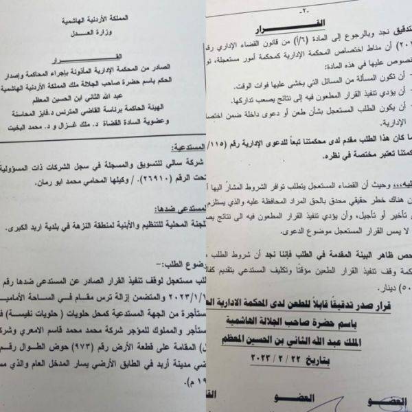 المحكمة الادارية تقرر وقف قرار بلدية اربد ضد "حلويات نفيسة"ومنع إزالة الترس المتنازع عليه
