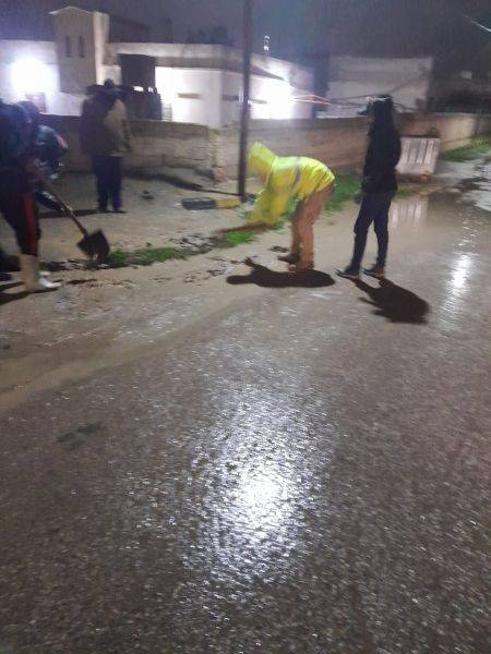 كوادر بلدية أم القطين والمكيفته تسحب مياه الأمطار من الشوارع الرئيسية