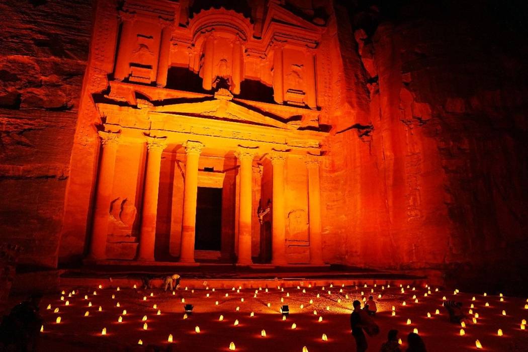 إضاءة الخزنة بالبترا باللون البرتقالي