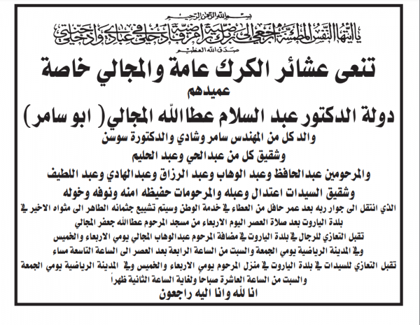 الفايز ناعيا المجالي: الوطن فقد قامة كبيرة