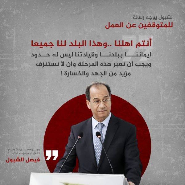 نداء عاجل : فيصل الشبول للمتوقفين عن العمل: انتم اهلنا ..وهذا البلد لنا جميعا