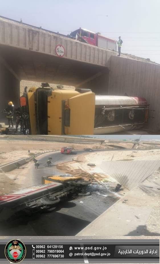 حادث تصادم صهريج ديزل على طريق الـ 100