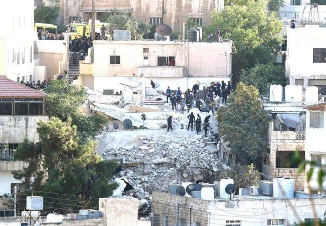 عاجل- فيديو وصور- : وفاتان واصابات بينهم اطفال بانهيار عماره في"اللويبدة ".، والخصاونة في الموقع