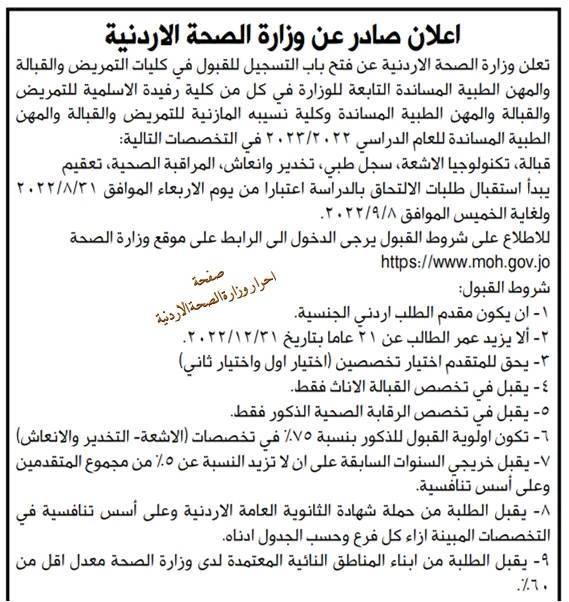 الصحة تفتح باب التسجيل في تخصصات (تفاصيل)