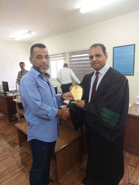 بالصور : قاضي محكمة بلدية الزرقاء ” قفطان العدوان ” يكرم نخبة من موظفين المحكمة