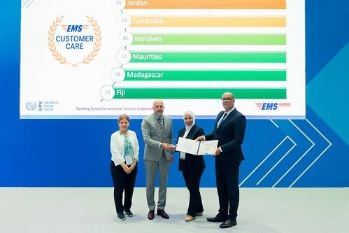 الأردن يحصد جائزة خدمة العملاء للبريد السريع" EMS" المستوى الذهبي "2025 ضمن مؤتمر الاتحاد البريدي العالمي.