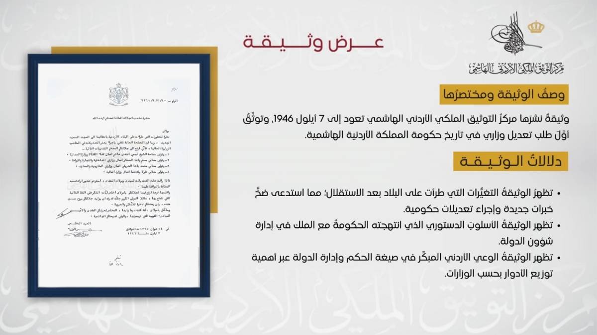 التوثيق الملكي يعرض وثيقة حول أول تعديل وزاري في تاريخ المملكة