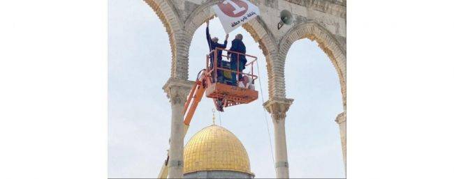 موظفو «إعمار الأقصى» يعلقون اللوحات الإرشادية لخدمة المصلين برمضان