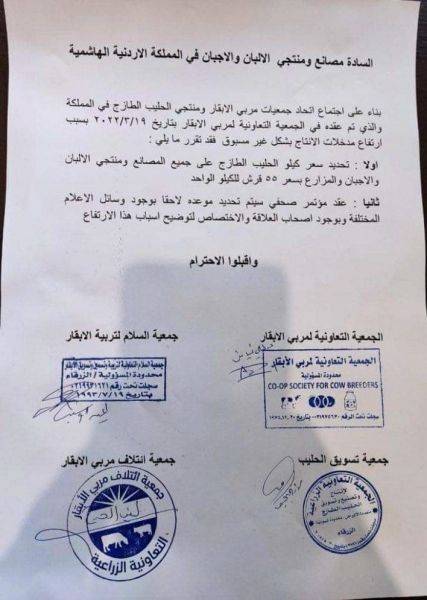 الحنيفات تأجيل اقساط شهر نيسان المستحقة للاقراض الزراعي