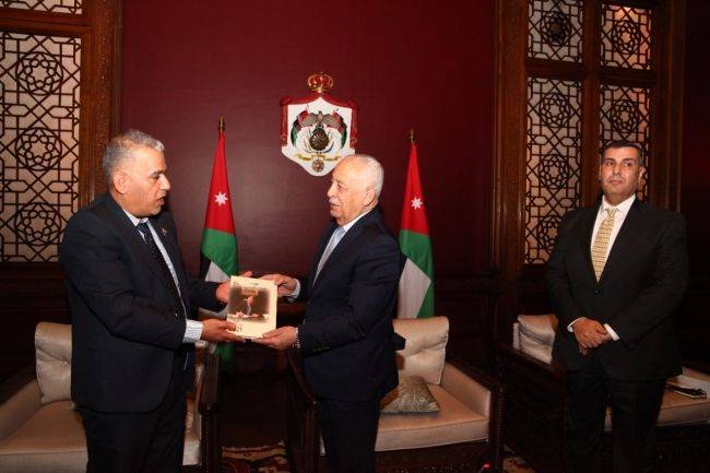 شاهد بالصور : العيسوي يلتقي وفدا طلابيا من جامعة اربد الاهلية ويتسلم كتاب مئوية الدولة الاردنية
