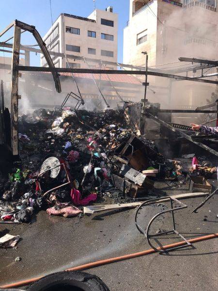 الدفاع المدني يخمد حريق شاحنه محمله بالاثاث في العاصمه
