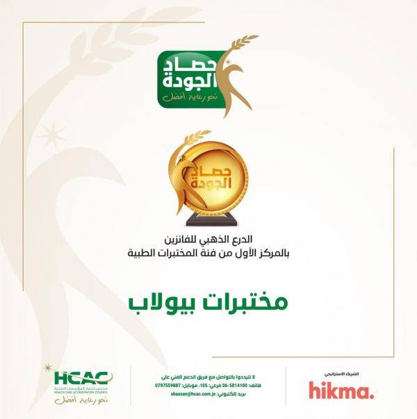 مختبر بيولاب يحصد جائزة الدرع الذهبي في مسابقة الجودة
